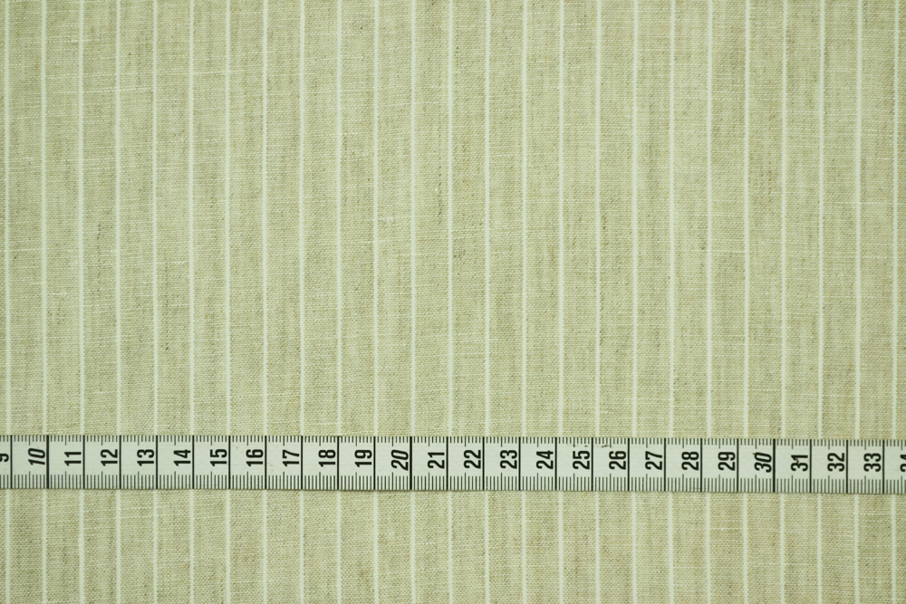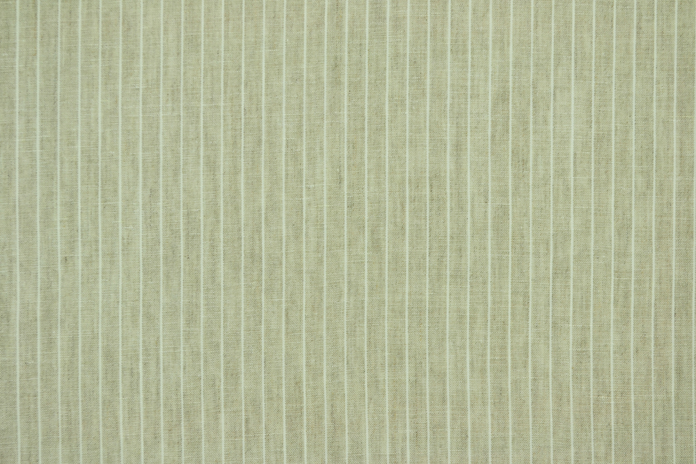 Tessuto tela in puro lino beige a righe in tinto filo bianco.