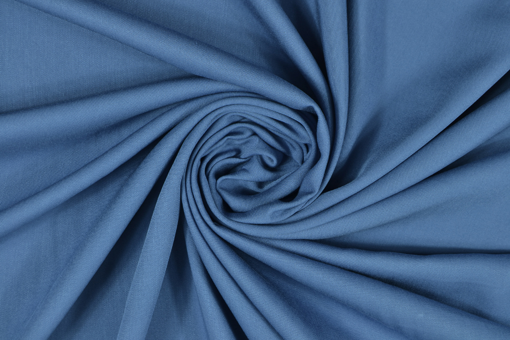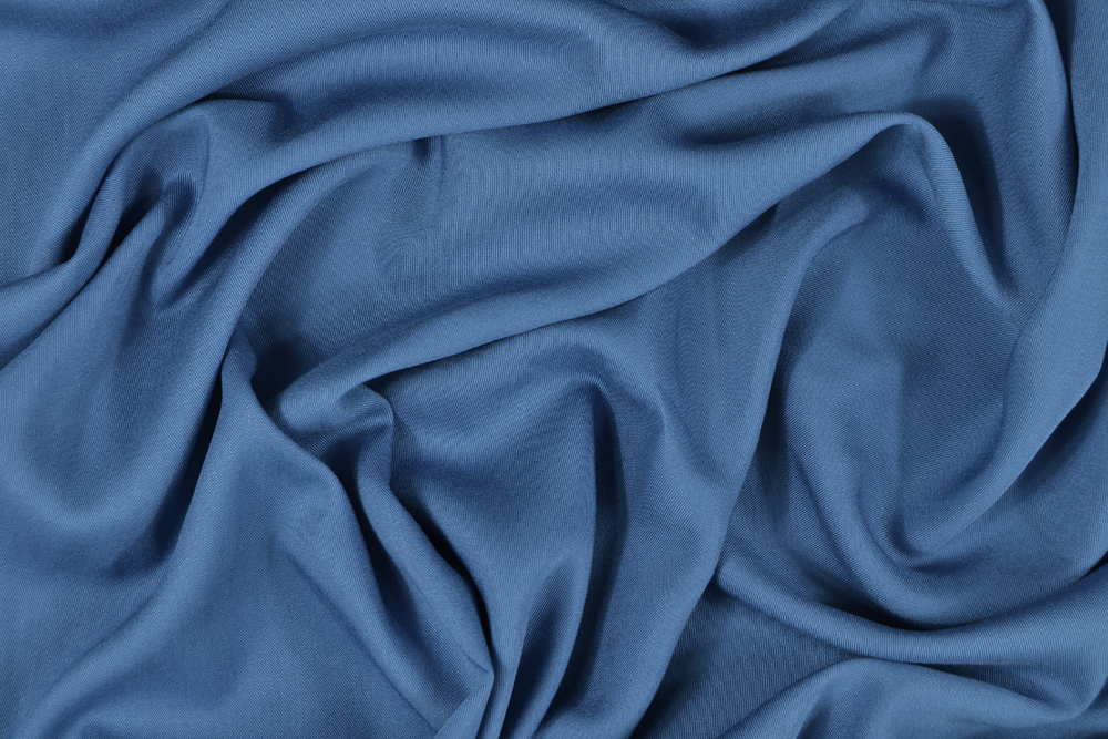 Freschissimo tessuto in viscosa colore blu acciaio.