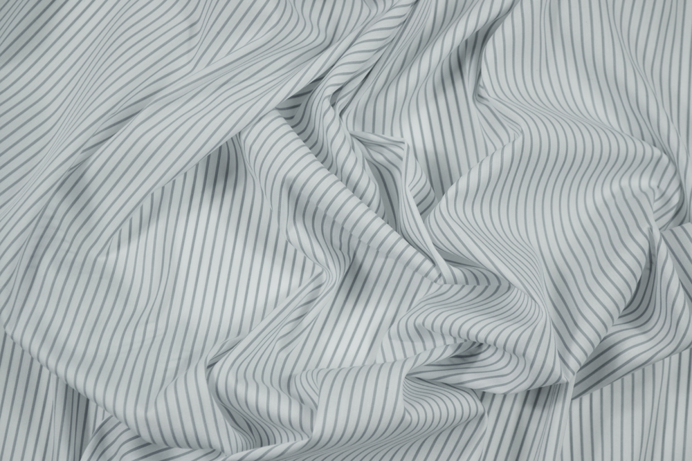 Scampolo di 3 metri di Tessuto in misto cotone bianco, a righe grigie in tinto filo. Riga larga 1 mm.
