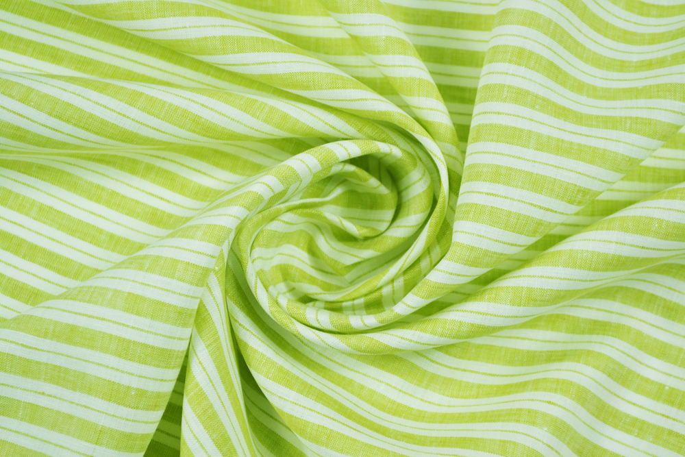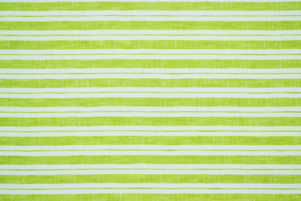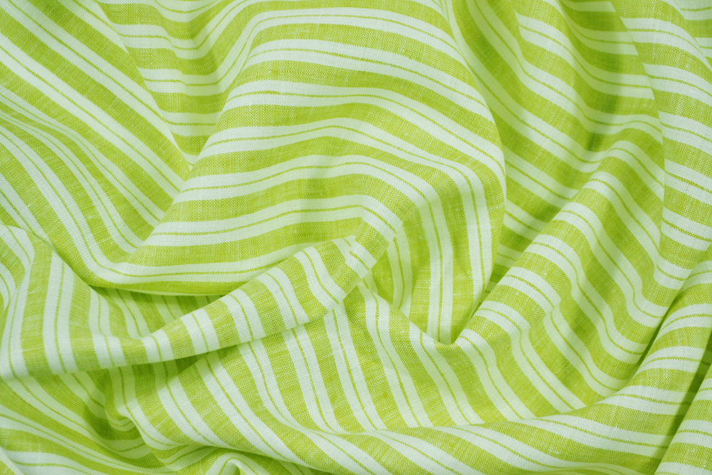 Scampolo di 3 metri di Tessuto tela in puro lino bianco a righe in tinto filo verde pistacchio.