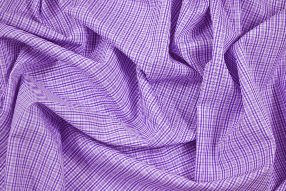 Scampolo di 3 metri di Tessuto popeline per camiceria in puro cotone di altissima qualità, bianco a quadretti vinaccia in tinto filo. Tessuto leggero ma coprente, fresco e morbido.