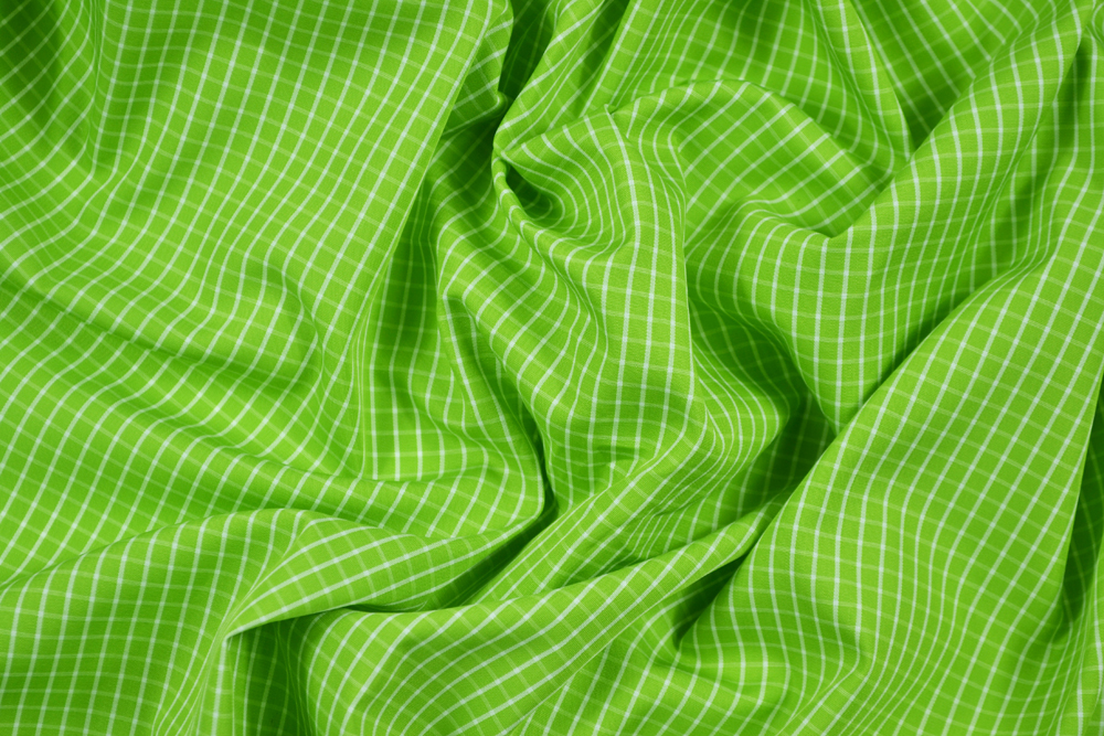 Scampolo di 3 metri di Tessuto per camiceria popeline in puro cotone verde a quadri bianco in tinto filo. Altissima qualità. Tessuto leggero ma coprente, fresco e morbido.