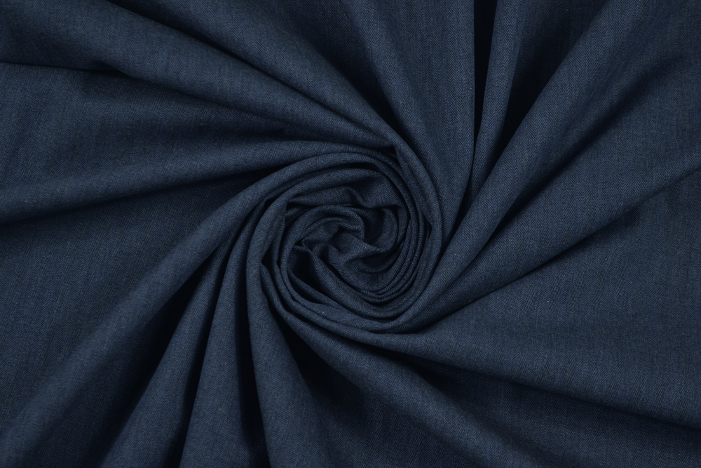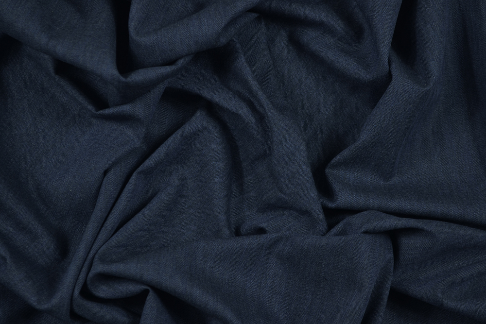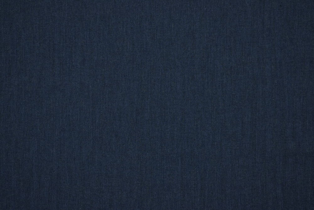 Scampolo di 3 metri di Tessuto spigato di puro cotone blu di altissima qualità. Motivo a spina di pesce, chevron, tono su tono.