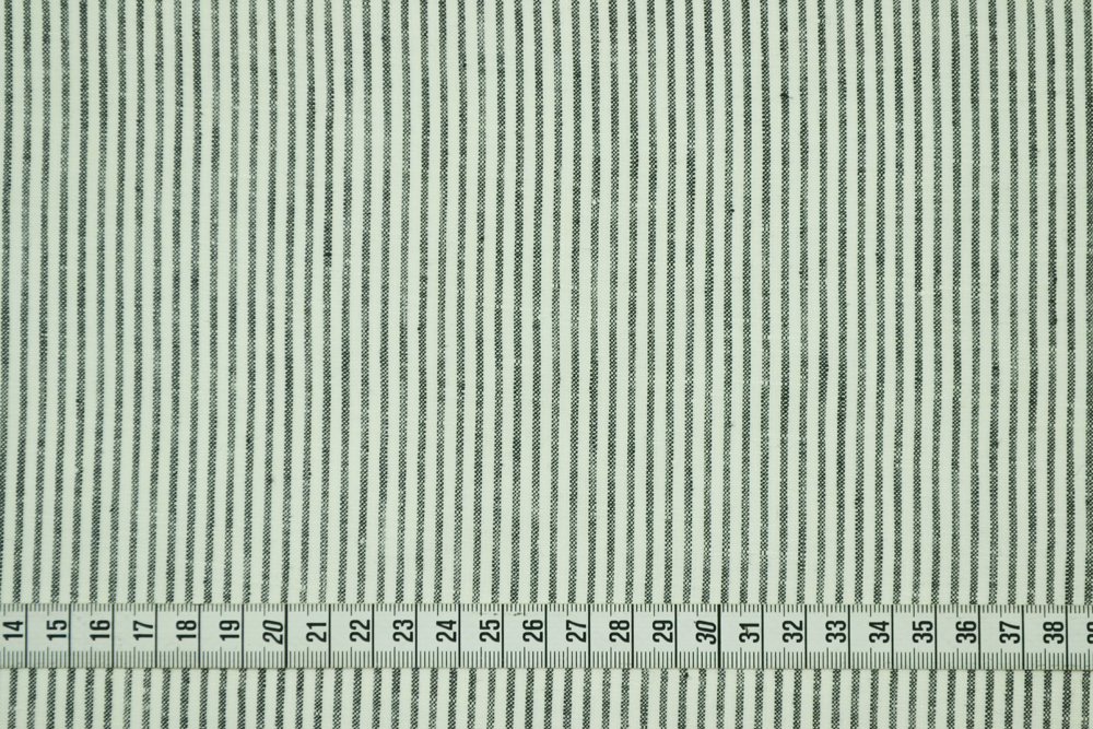 Scampolo di 3 metri di Tessuto tela in puro lino a righe in tinto filo bianco panna e nero.