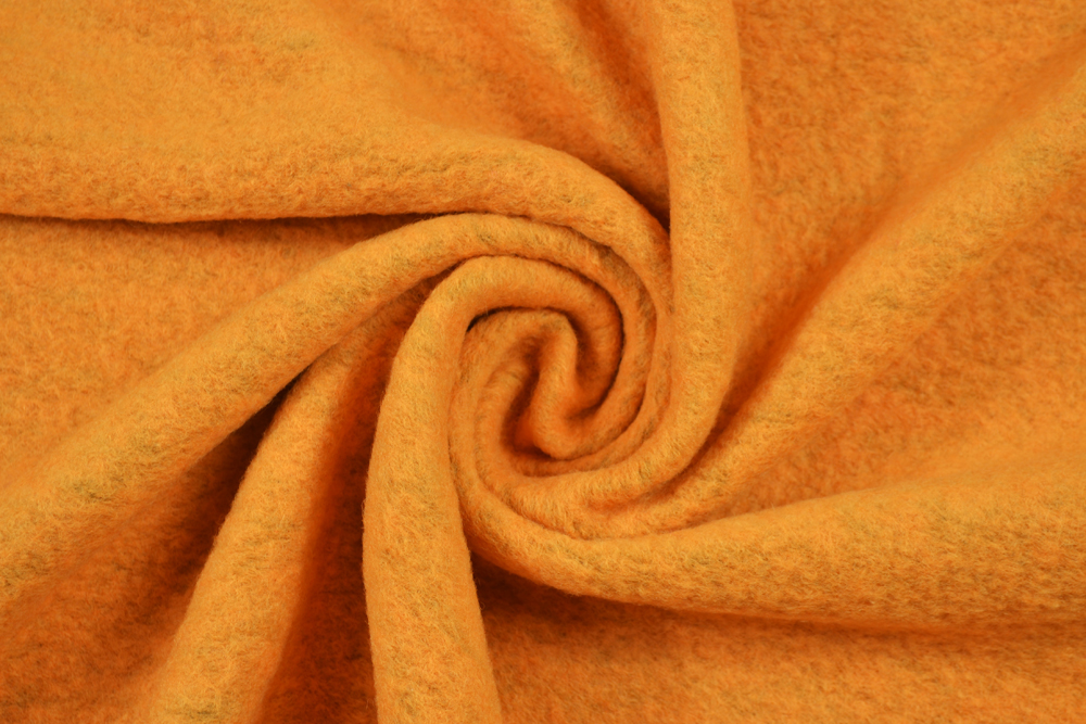 Irresistibile lana cotta color arancione chiaro. Tessuto (base maglia) morbido e confortevole, dalla superficie compatta e follata. NON rigido.