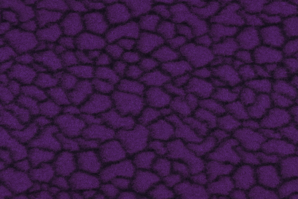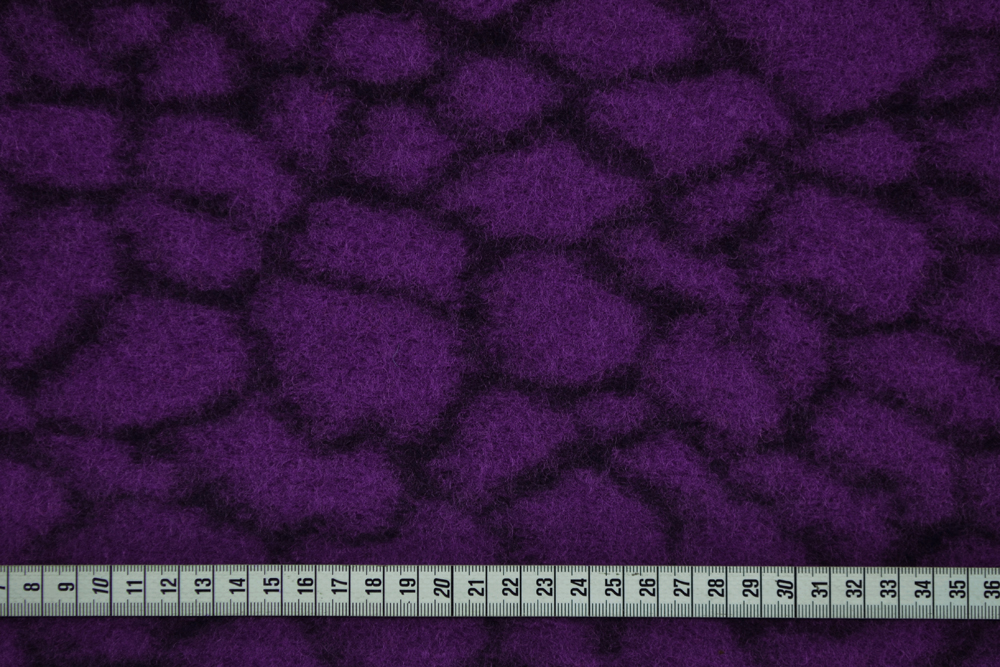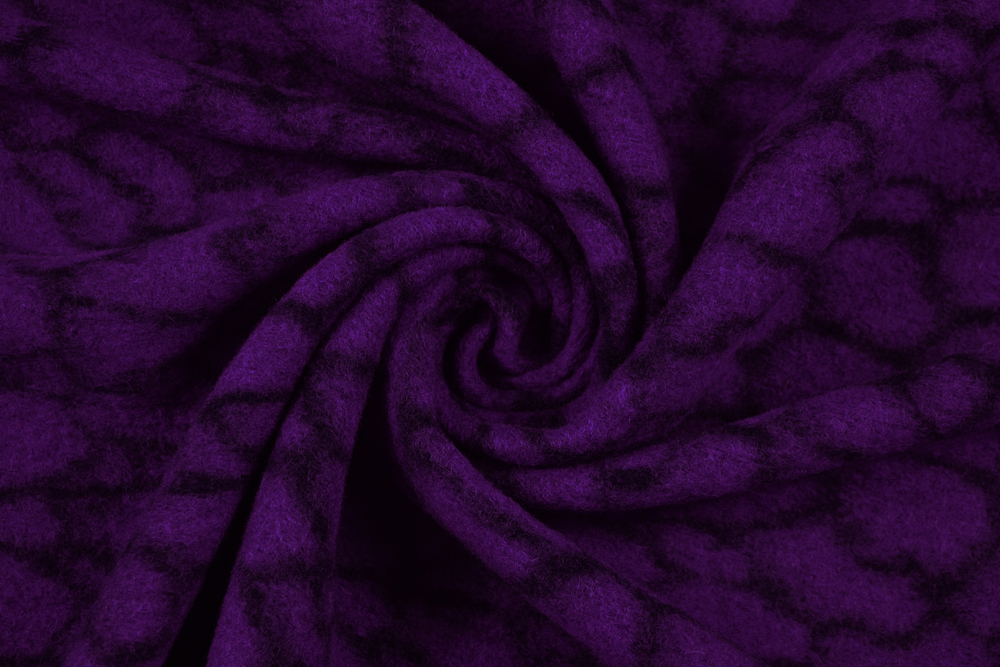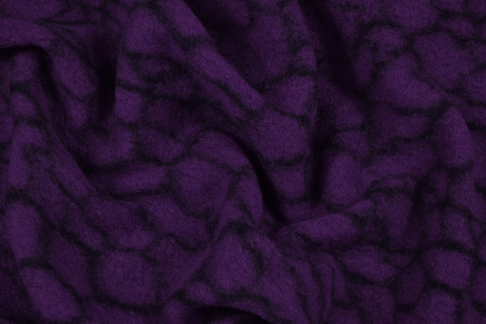 Scampolo di 3 metri di Irresistibile lana cotta in pura lana con fantasia maculata in viola e nero.
