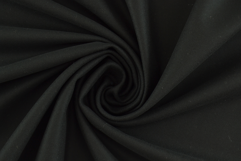 Scampolo di 3 metri di Caldo panno nero in pura lana vergine. Panno pesante e ben compatto, morbido e piacevole al tatto. Tessuto di ottima qualità.
