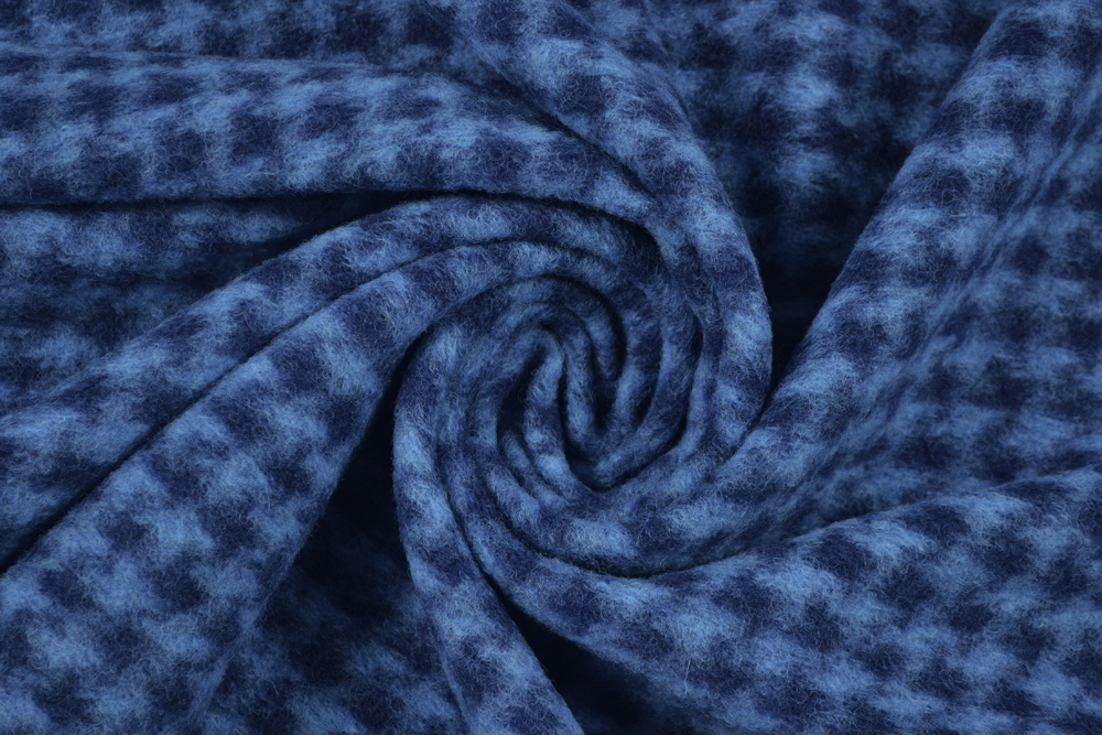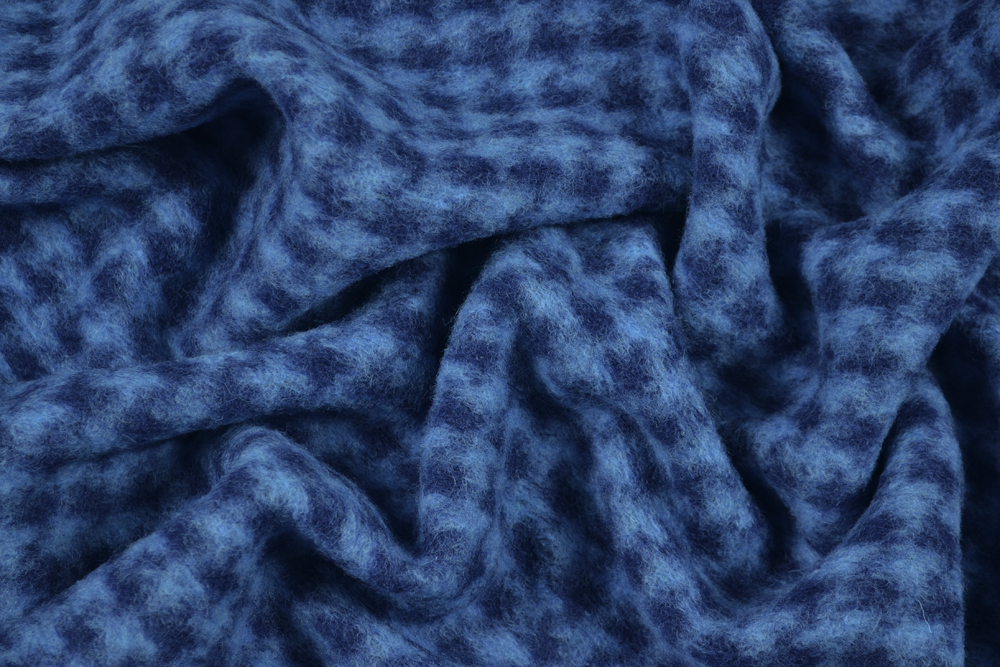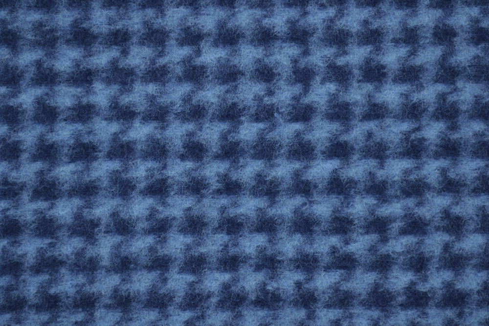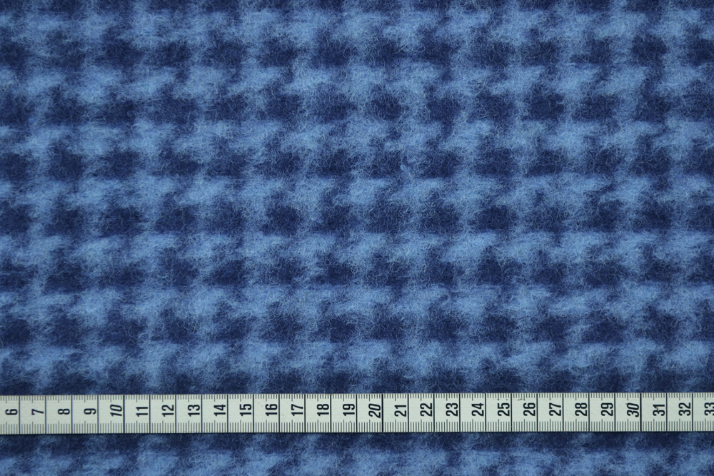 Scampolo di 3 metri di Lana cotta, con motivo pied de poule in blu e azzurro.
