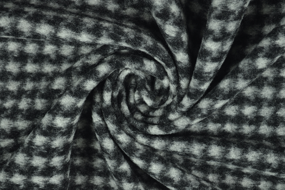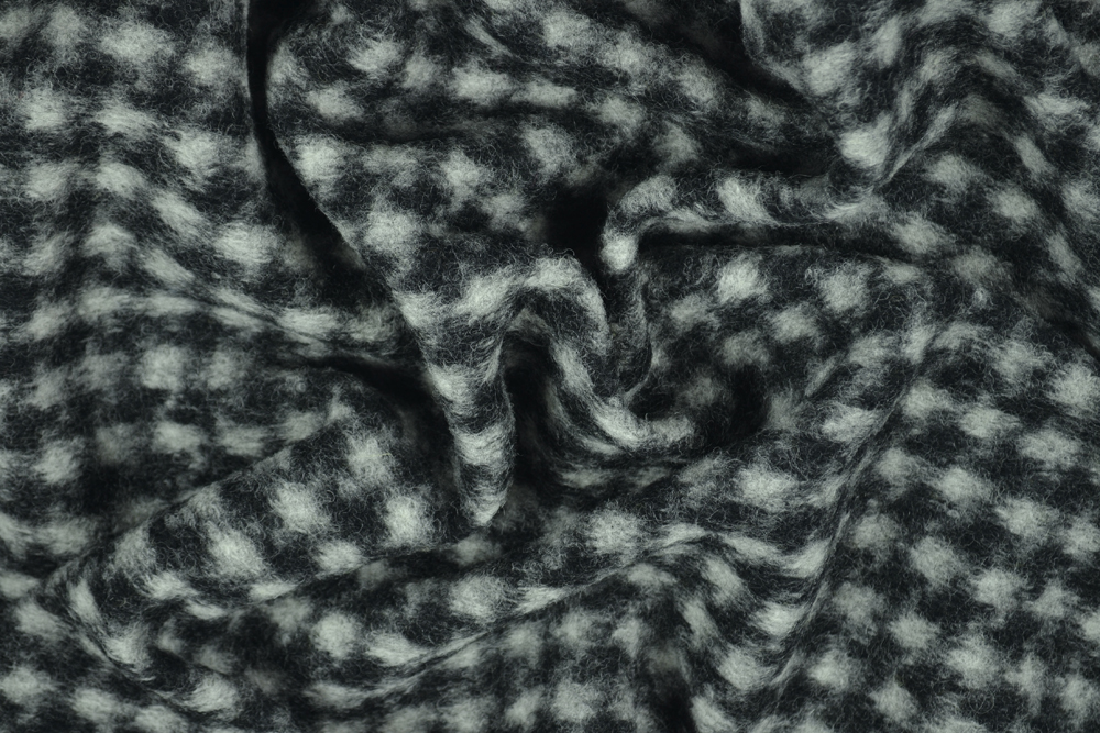Scampolo di 3 metri di Lana cotta, con motivo pied de poule in nero e grigio chiaro.