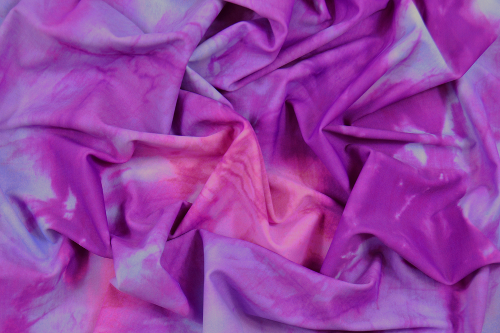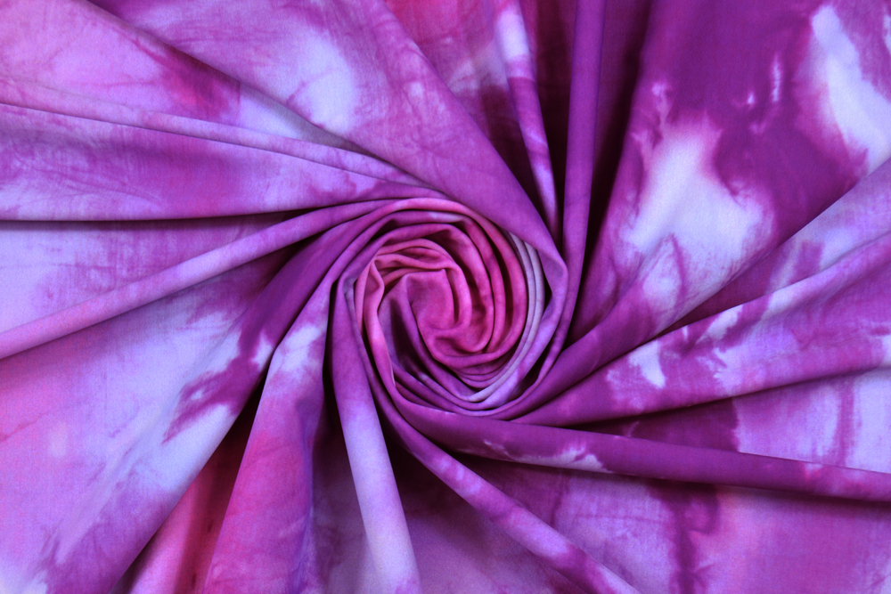 Lycra opaca stampata con motivo astratto in malva e lilla. Tessuto bi-stretch adatto per innumerevoli creazioni: vestiti aderenti, abbigliamento sportivo, spettacolo, danza, costumi da bagno, ecc..