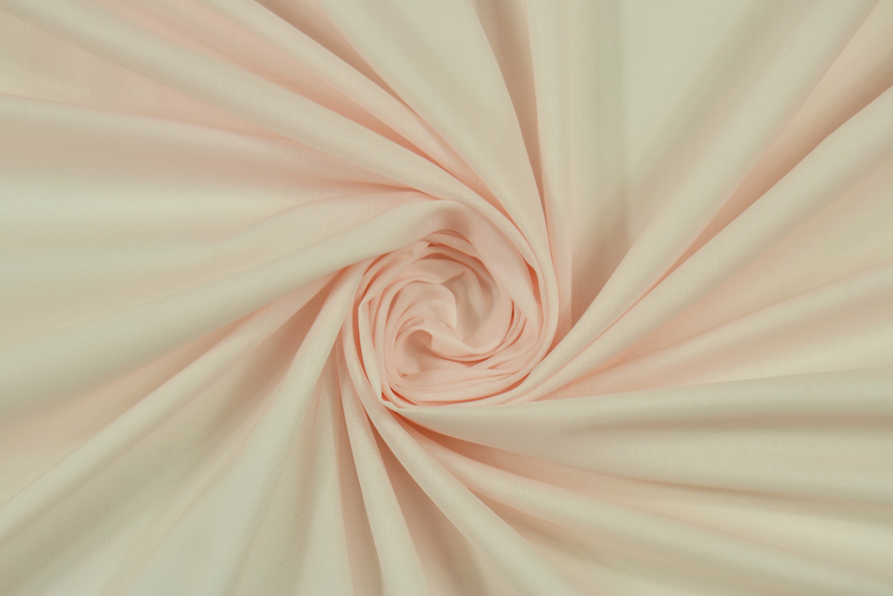 Mussola in puro cotone color rosa pesca chiaro. Tessuto molto leggero, sottile, fresco, liscio, morbido e "vaporoso", traspirante. Tessuto semi-trasparente.