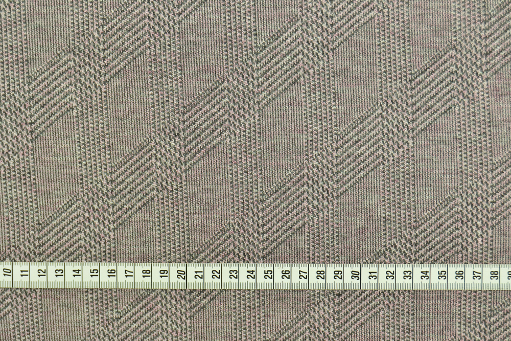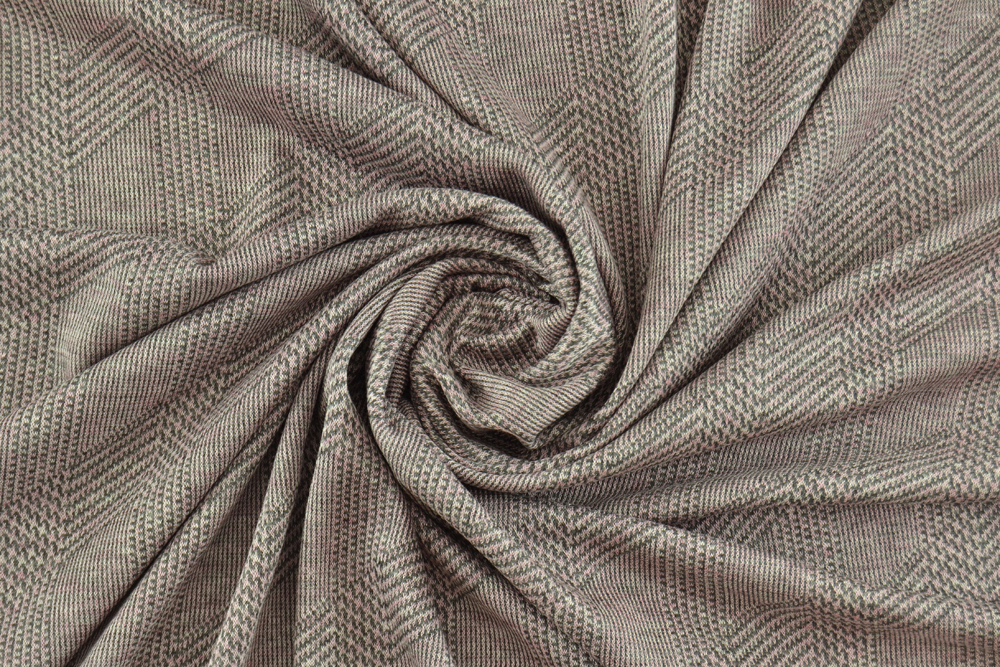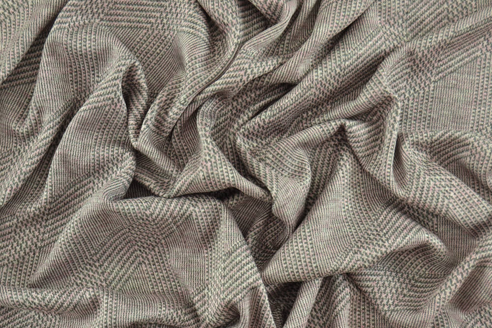 Scampolo di 3 metri di Maglina in cotone elasticizzato con motivo Principe di Galles obliquo in grigio e rosa.
