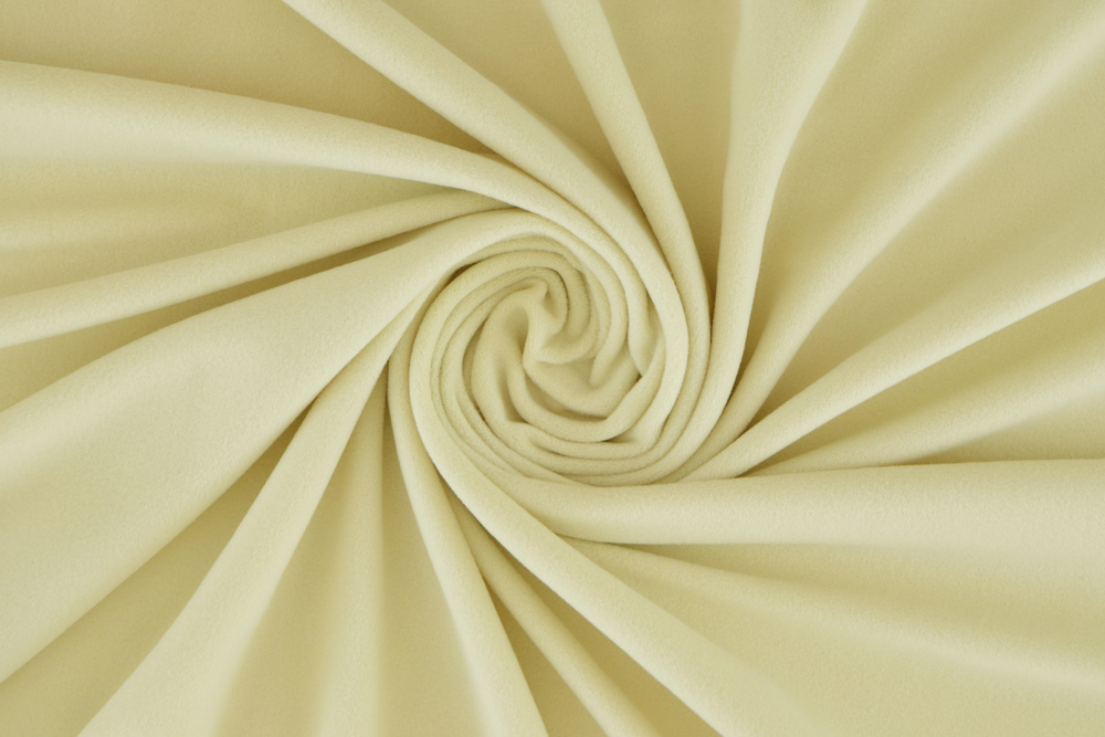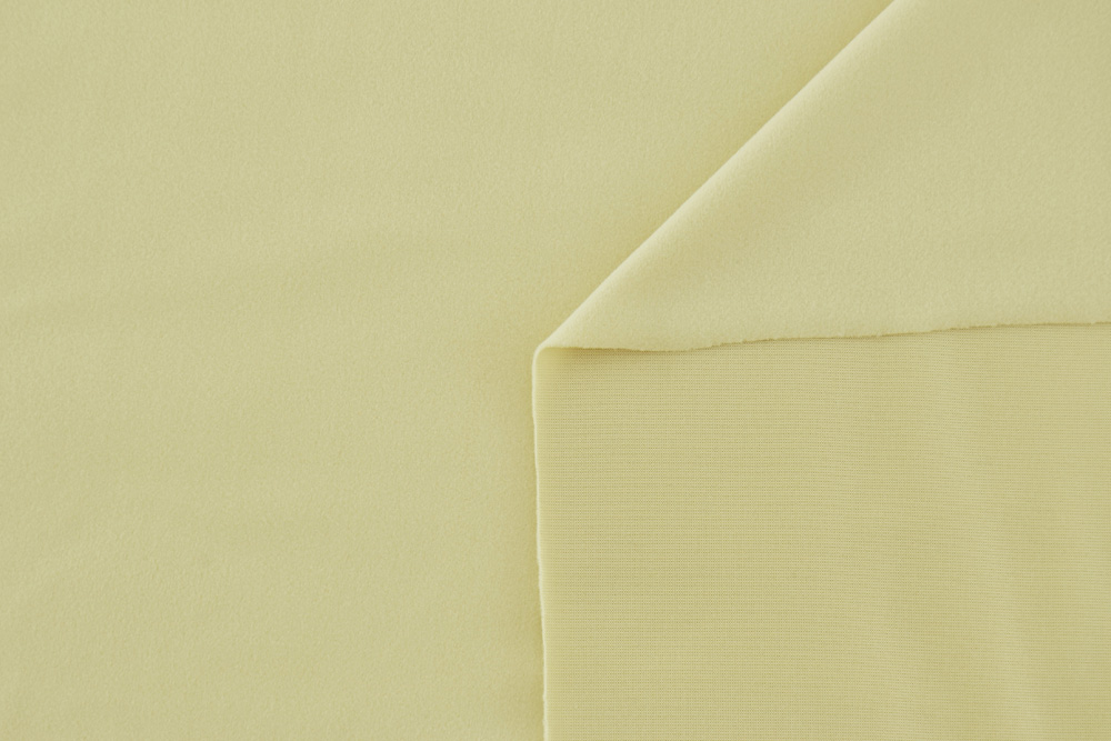 Tessuto micropile traspirante colore beige chiaro. Si tratta di un micro-pile leggero, di poco spessore, ultra-morbido e soffice, leggermente elasticizzato, con rovescio in maglina.