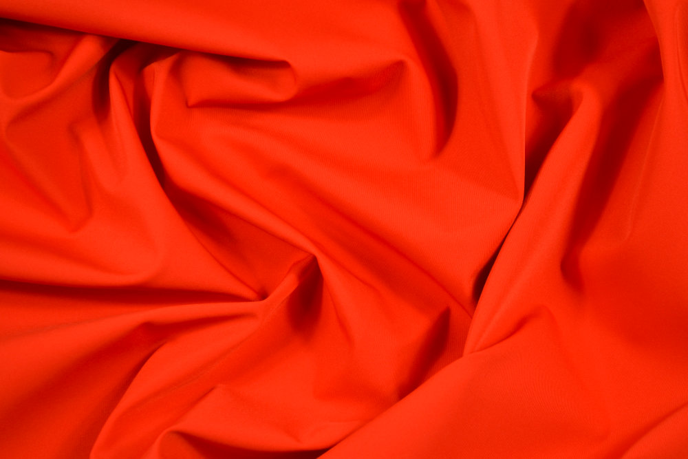 Scampolo di 3 metri di Tessuto sintetico idrorepellente arancione con membrana in PVC sul rovescio. Di medio peso, robusto, ma morbido e leggermente elasticizzato.
