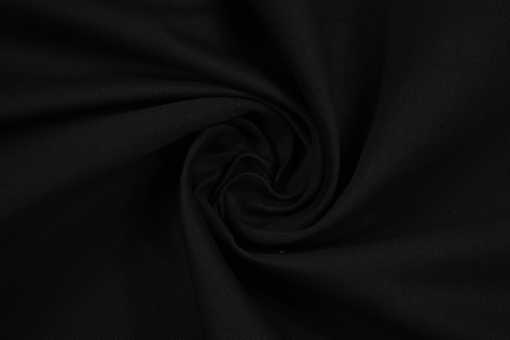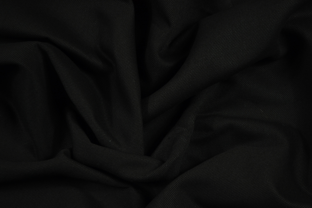 Denim nero di puro cotone. Denim nero + nero ovvero ottenuto con fili neri sia in trama che in ordito (black on black). Denim robusto.