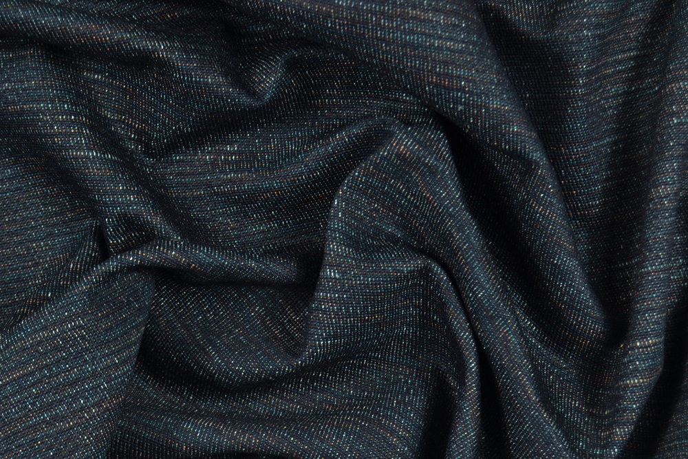 Tessuto denim in 100% cotone di ottima qualità. Classico colore blu indigo dei jeans, con la particolarità di avere dei fili di fondo colore rosa pesca e turchese: in questo modo il colore non è una semplice tinta unita ma è un blu con delle screziature colorate appena accennate, ben visibili sul rovescio.