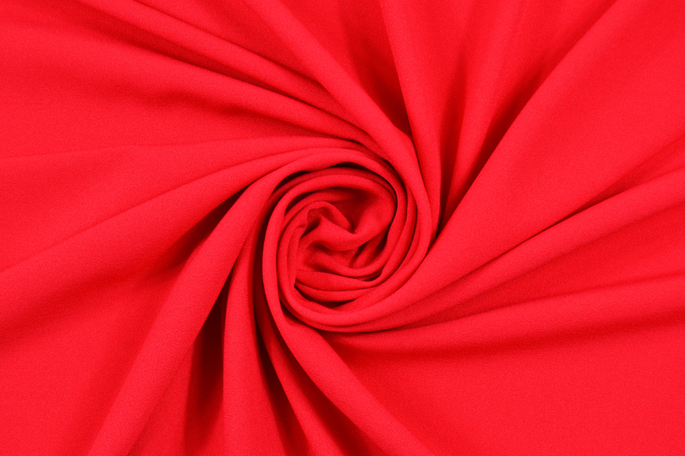 Scampolo di 3 metri di Tessuto crêpe di poliestere rosso, leggermente elasticizzato. Tessuto ingualcibile, molto fluido, morbido e comodo. Coprente!