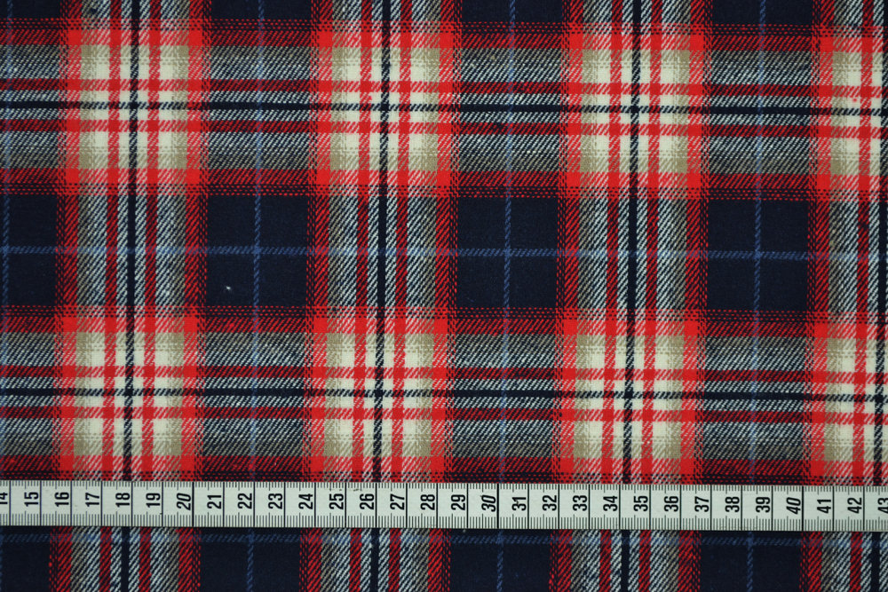 Scampolo di 3 metri di Tessuto twill in flanella di puro cotone con motivo a quadri tartan scozzese in tinto filo in rosso, bianco e blu.