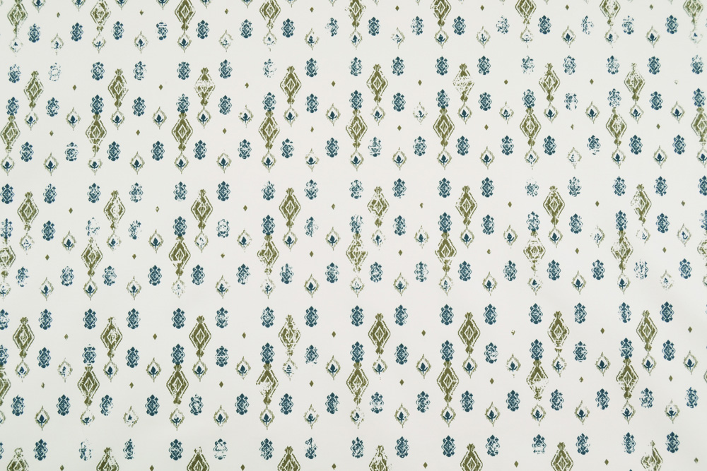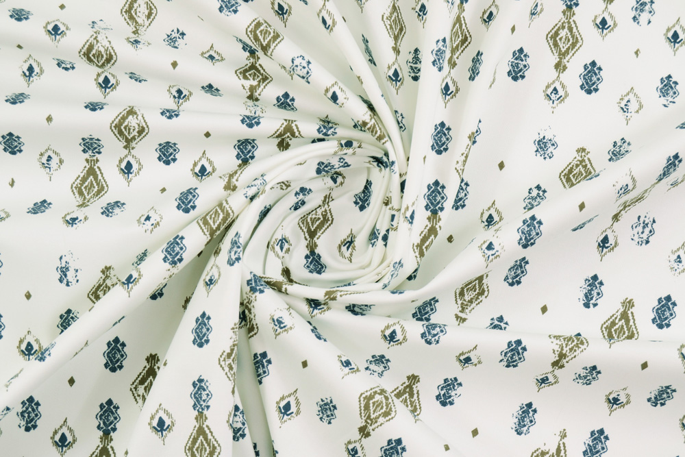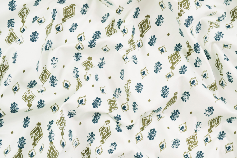 Scampolo di 3 metri di Tessuto GABARDINE di cotone con stampa di losanghe in verde militare e blu.