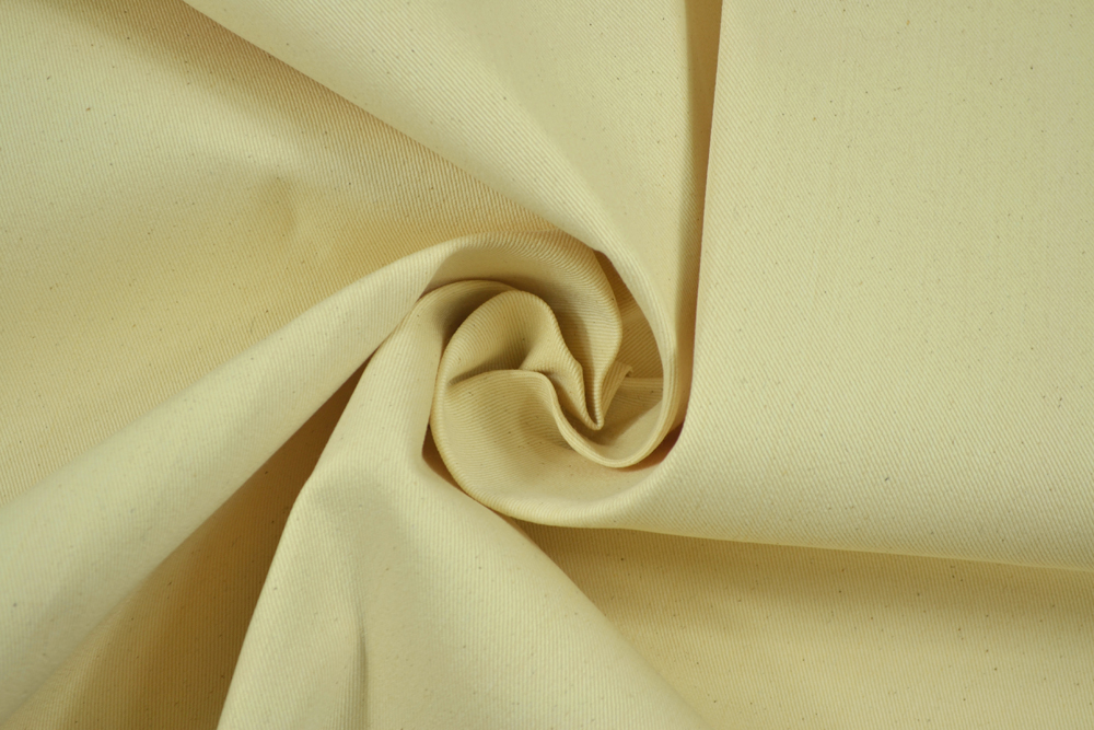 Scampolo di 3 metri di Robusto tessuto drill di cotone color ecrù, naturale greggio.