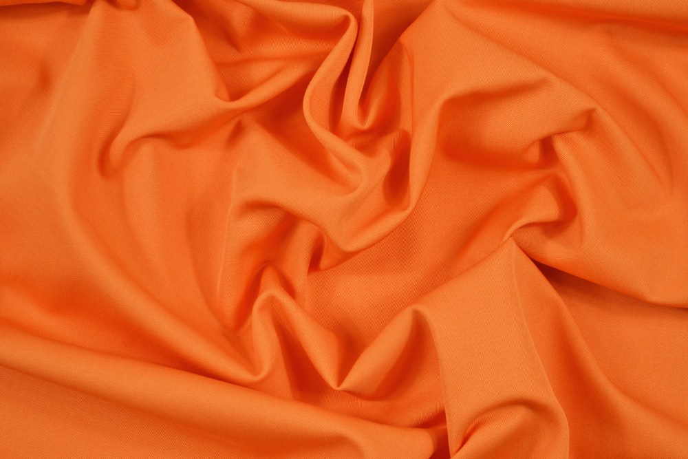 Scampolo di 3 metri di Tessuto twill in acetato, al tatto del tutto simile al cotone, colore arancione, particolarmente adatto per la creazione di pantaloni e gonne ampie, abiti, ecc..