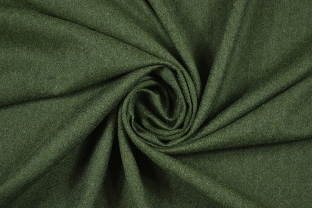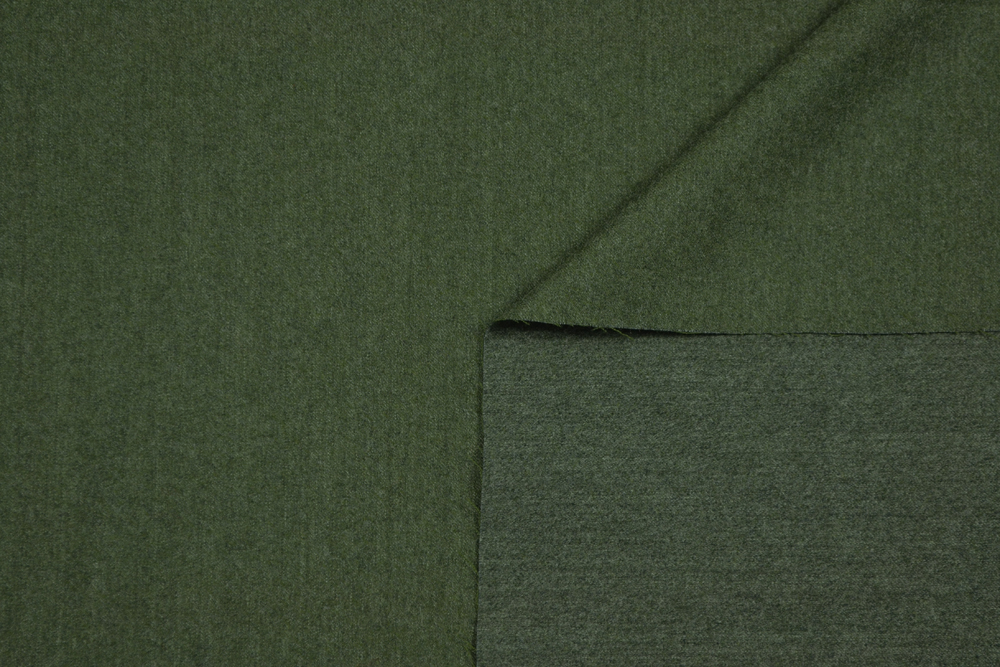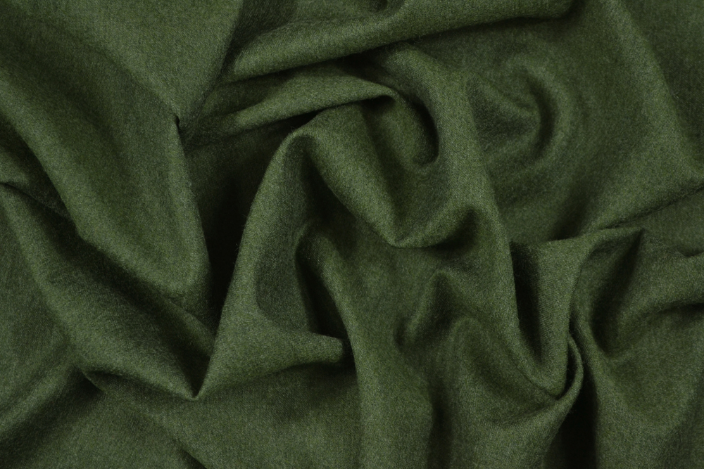 Scampolo di 3 metri di Flanella in pura lana di ottima qualità e provenienza, color verde oliva scuro screziato. Tessuto pettinato di lana sottile, piacevole al tatto e molto confortevole.