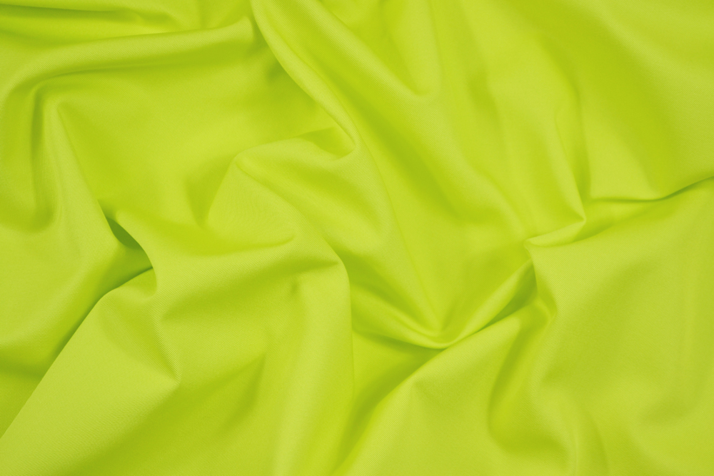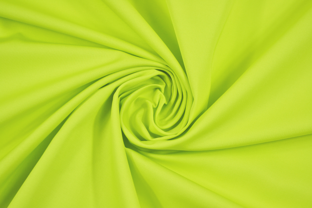 Scampolo di 3 metri di Tessuto twill in acetato, al tatto del tutto simile al cotone, colore tra il giallo e il verde acido chiaro, particolarmente adatto per la creazione di pantaloni e gonne ampie, abiti, ecc..