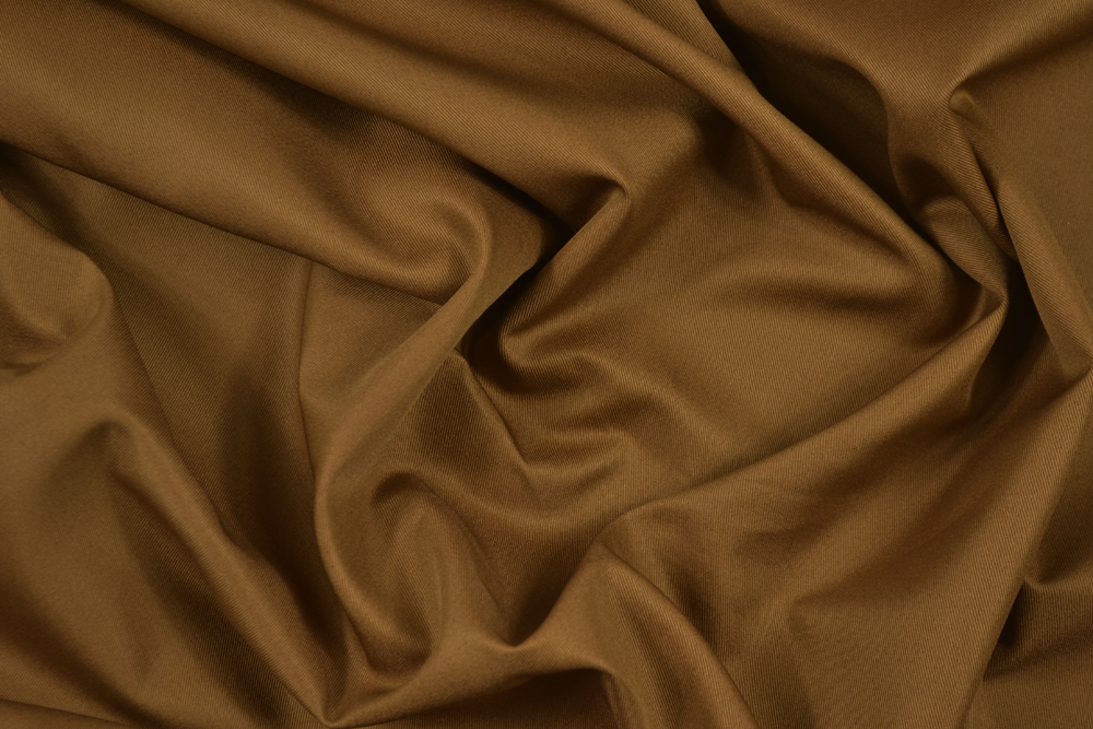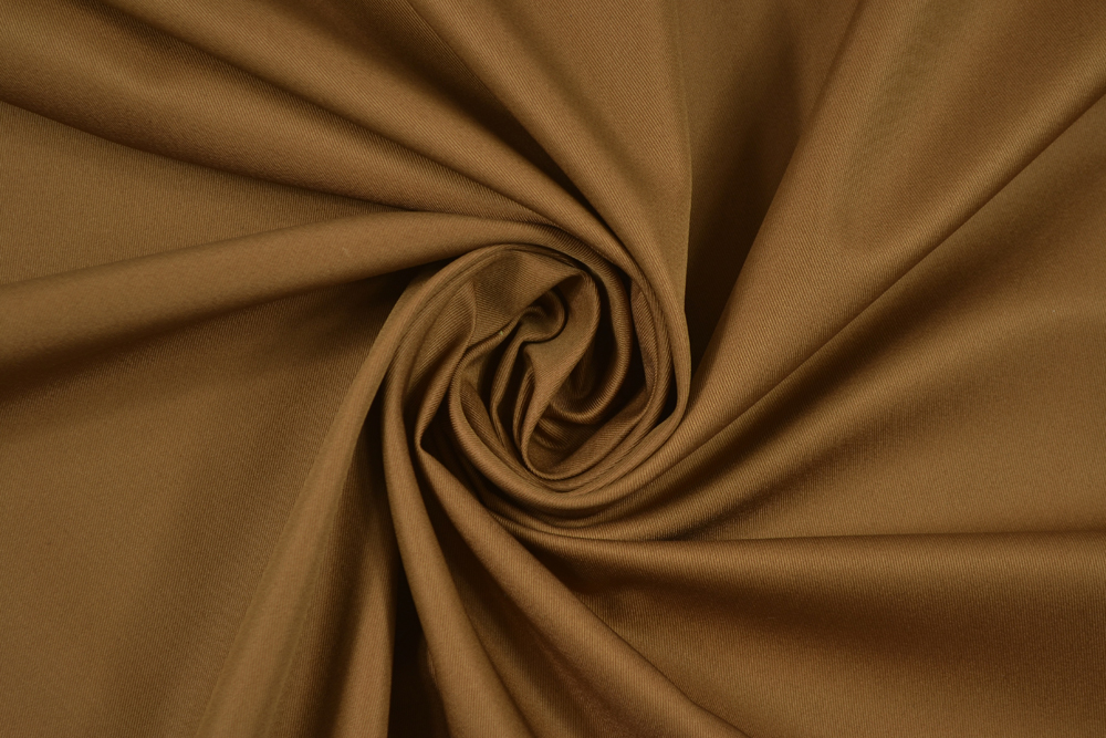 Scampolo di 3 metri di Tessuto twill in misto cotone color marrone. Cotone di mano fresca, liscia e asciutta. Robusto, di medio peso.