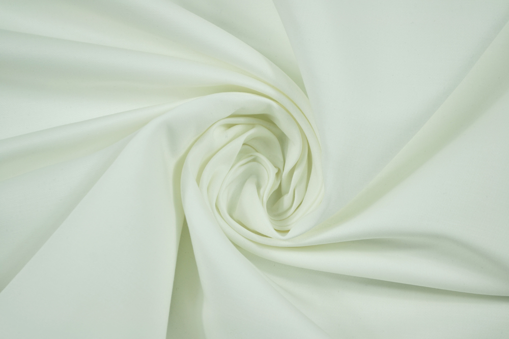 Scampolo di 3 metri di Tessuto gabardine in lino e cotone bianco. Di mano fresca e asciutta. Trama stretta e compatta.