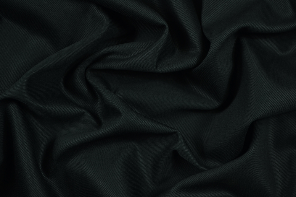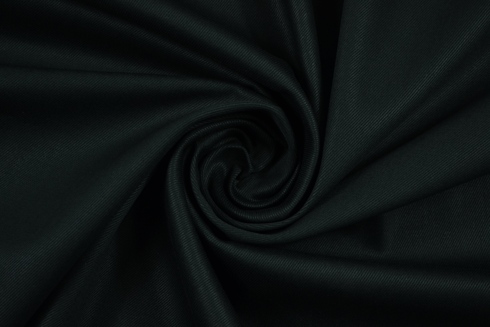 Denim nero di puro cotone. Denim nero + nero ovvero ottenuto con fili neri sia in trama che in ordito (black on black). Finish leggermente lucido (trattamento della superficie).