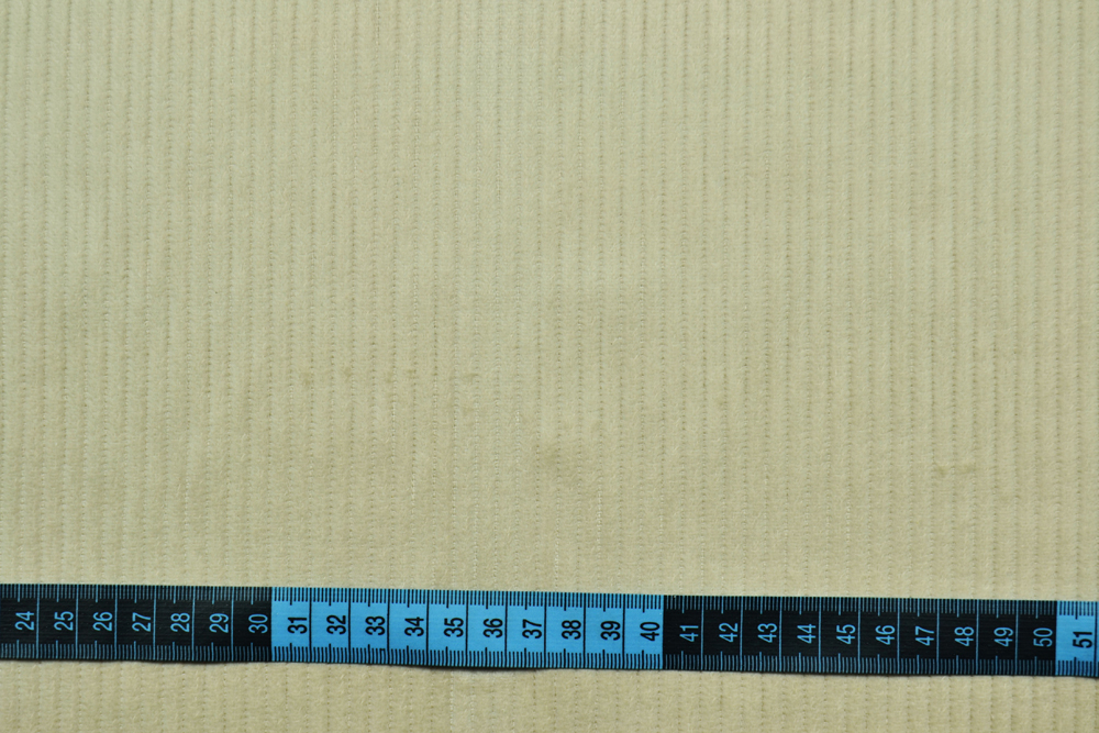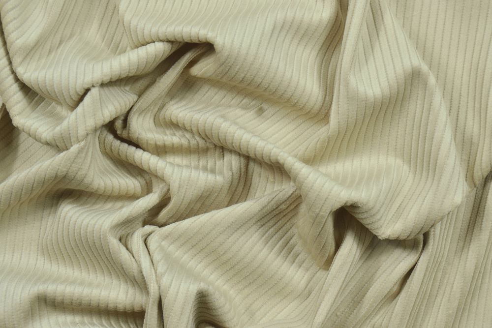 Il nostro velluto a coste grosse beige chiaro di Cotone 300 righe è il materiale perfetto per chi cerca un tessuto robusto, elegante e versatile. Con la sua trama unica a coste evidenti, questo velluto dona un tocco di personalità a ogni creazione, rendendolo ideale per abbigliamento, arredamento e accessori.