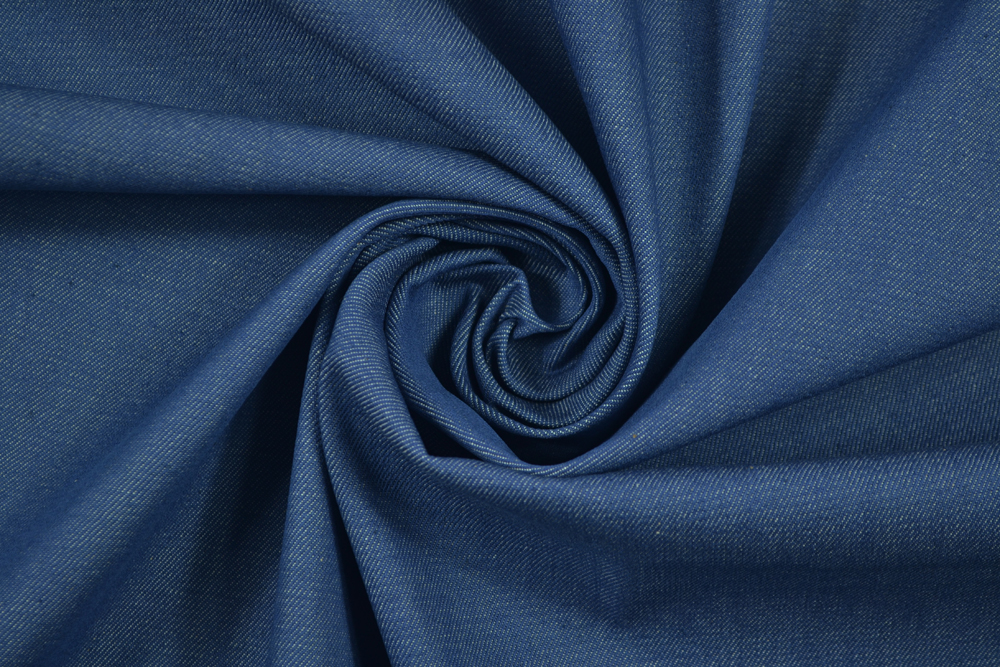 Denim blu medio lavato 100% cotone. Questo tessuto offre una combinazione ideale di comfort e resistenza, grazie alla sua texture morbida ma solida.