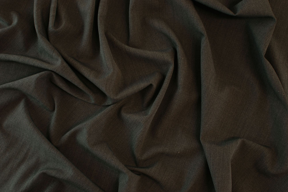 Tessuto gabardine di lana pettinata stretch di ottima qualità color tortora scuro, tra il marrone e il grigio.
