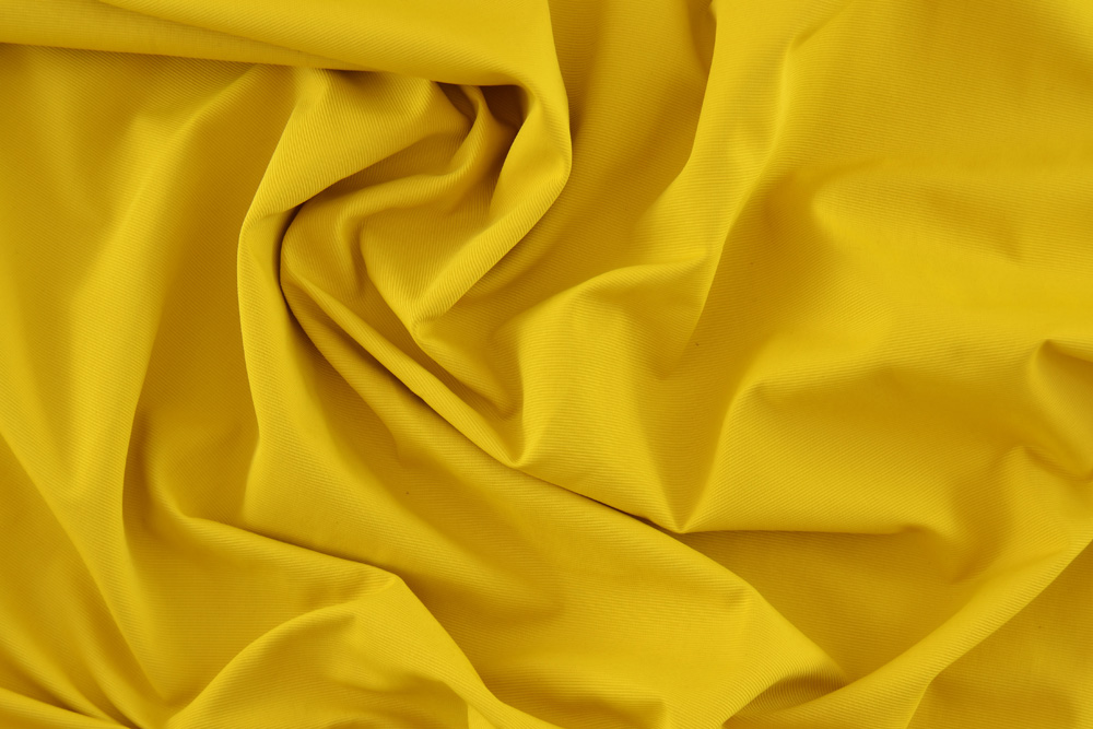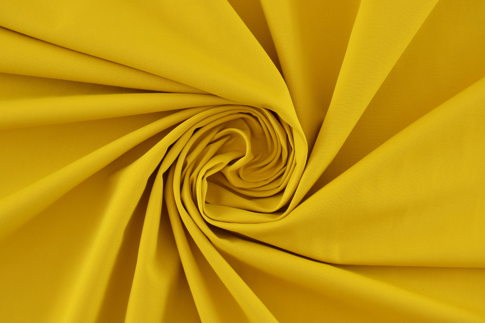 Tessuto in misto cotone-nylon idrorepellente color giallo zafferano.