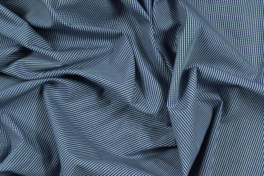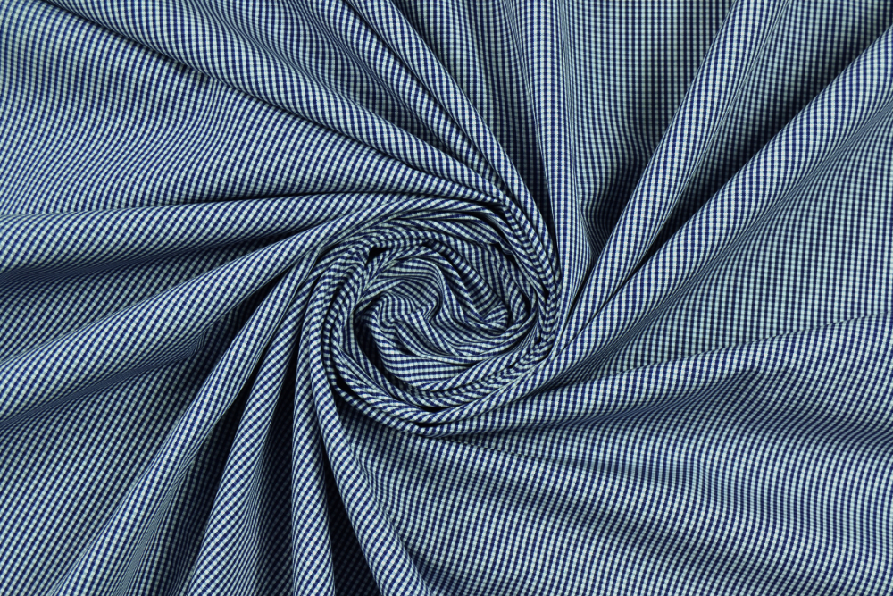 Tessuto per camiceria popeline in puro cotone bianco a quadretti blu in tinto filo di altissima qualità . Tessuto leggero, compatto, morbido.