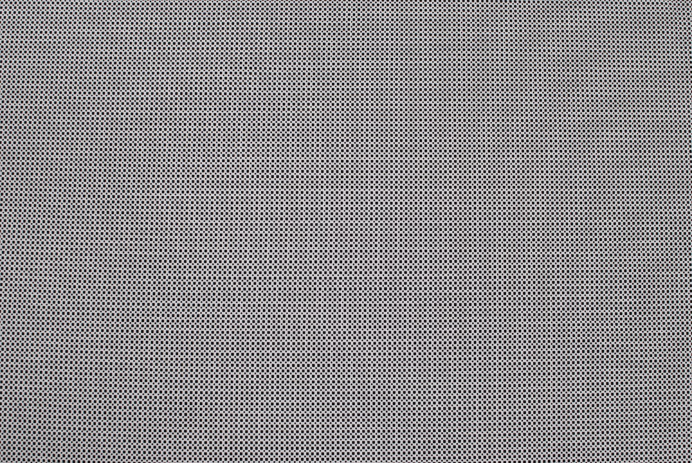 Tessuto in cotone leggermente elasticizzato, con motivo geometrico in tinto filo bianco e nero, dato dall'armatura incrociata di fili bianchi e neri.