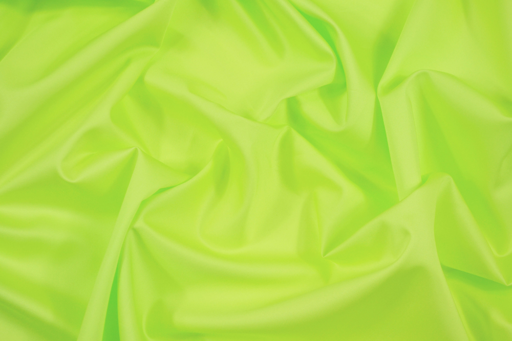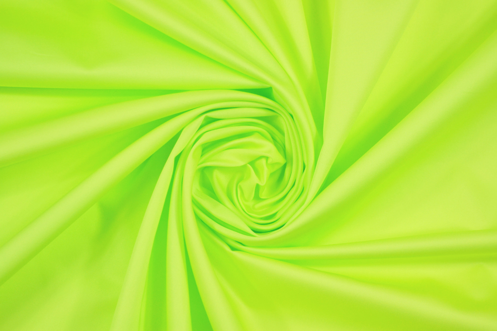 Tessuto rasatello leggero di puro cotone color giallo acido/lime, di mano fresca e asciutta. Aspetto delicatamente satinato, non lucido.