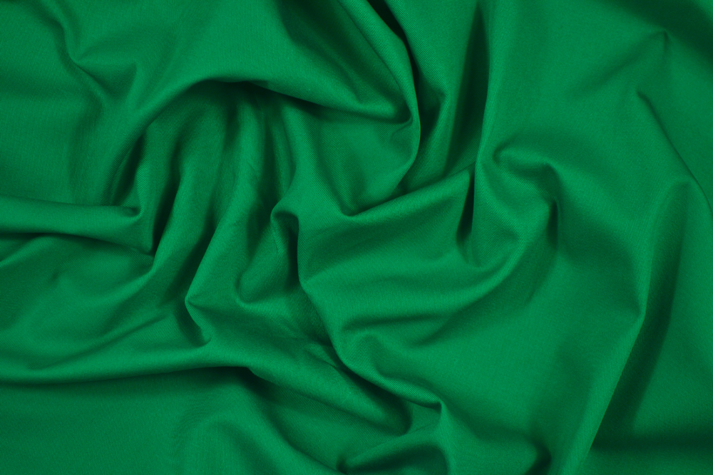 Tessuto twill leggero, in puro cotone verde. Tessuto sottile, di medio peso e perfettamente coprente. Di mano fresca e asciutta.