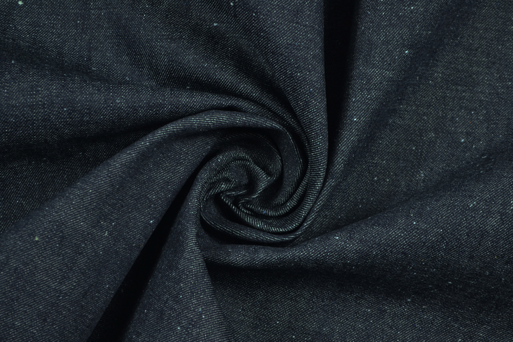 Colore blu scuro "puntinato" cioè con puntini evidenti dei fili di trama bianchi sottostanti.