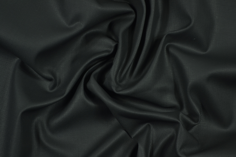 Denim di cotone nero elasticizzato con superficie resinata, gommata, per un un finishing più originale! Molto morbido e super comodo da indossare!
