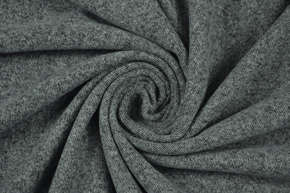 Calda maglia in cotone leggermente elasticizzato, garzata, cioè effetto "felpato". Colore sale e pepe, bianco e nero screziato.