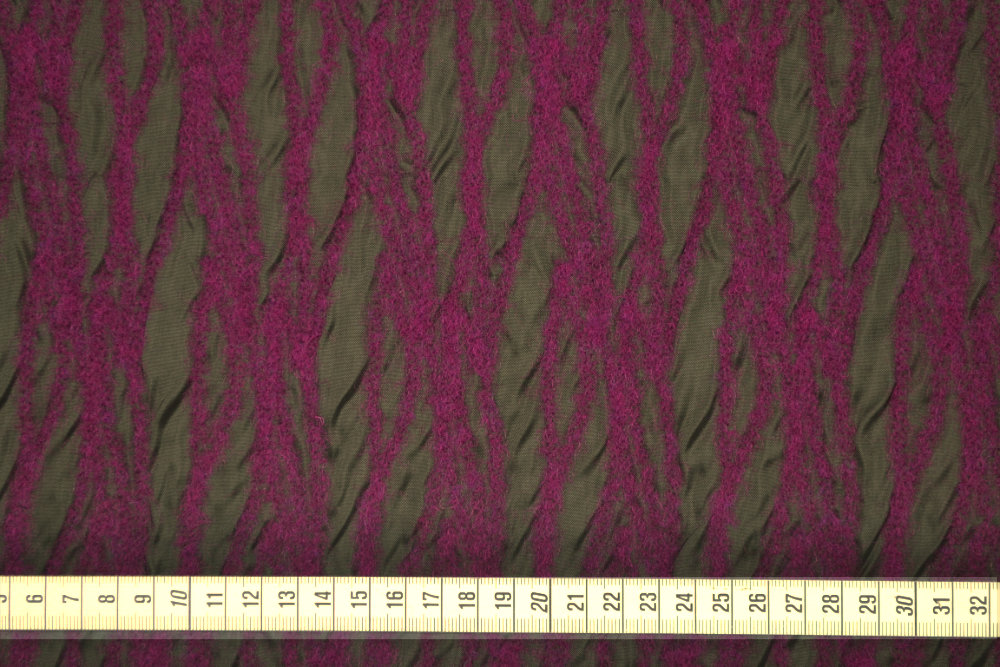 Lana cotta morbida viola in misto lana con fantasia animalier zebrata nera. Si tratta di una maglia di lana di medio peso, con superficie pelosa e morbida.