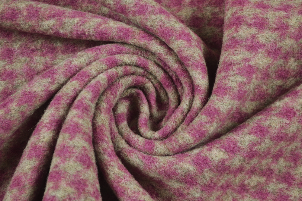 Lana cotta, con motivo pied de poule in color beige taupe e color ciclamino.