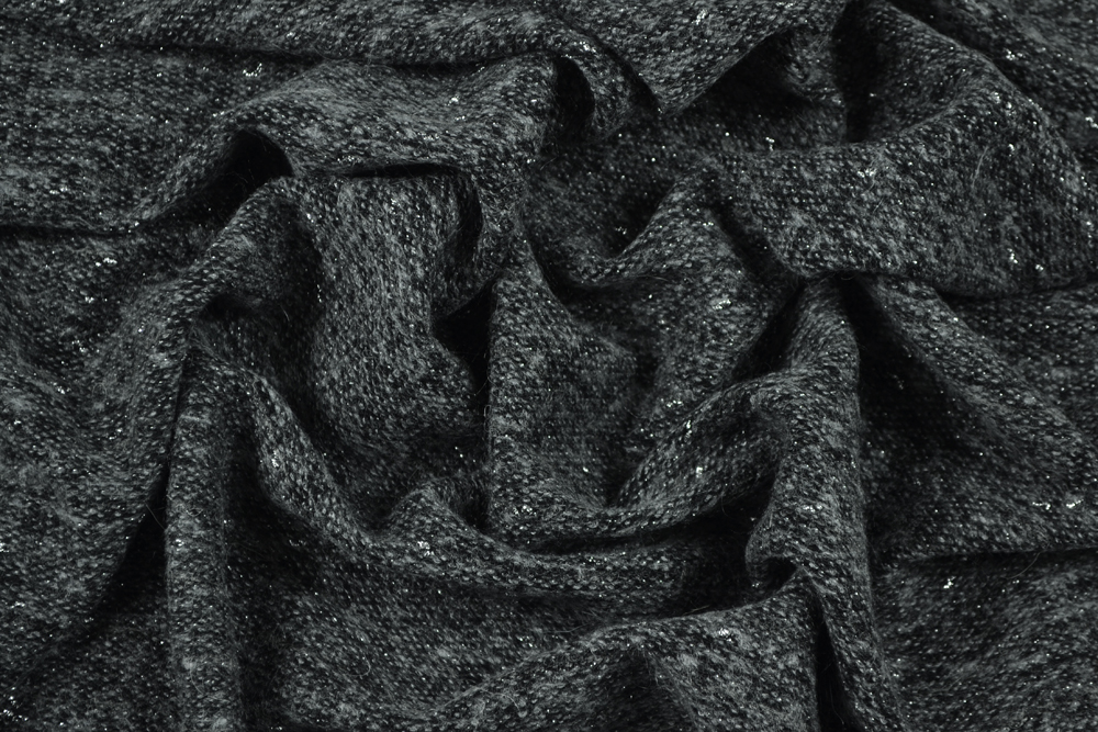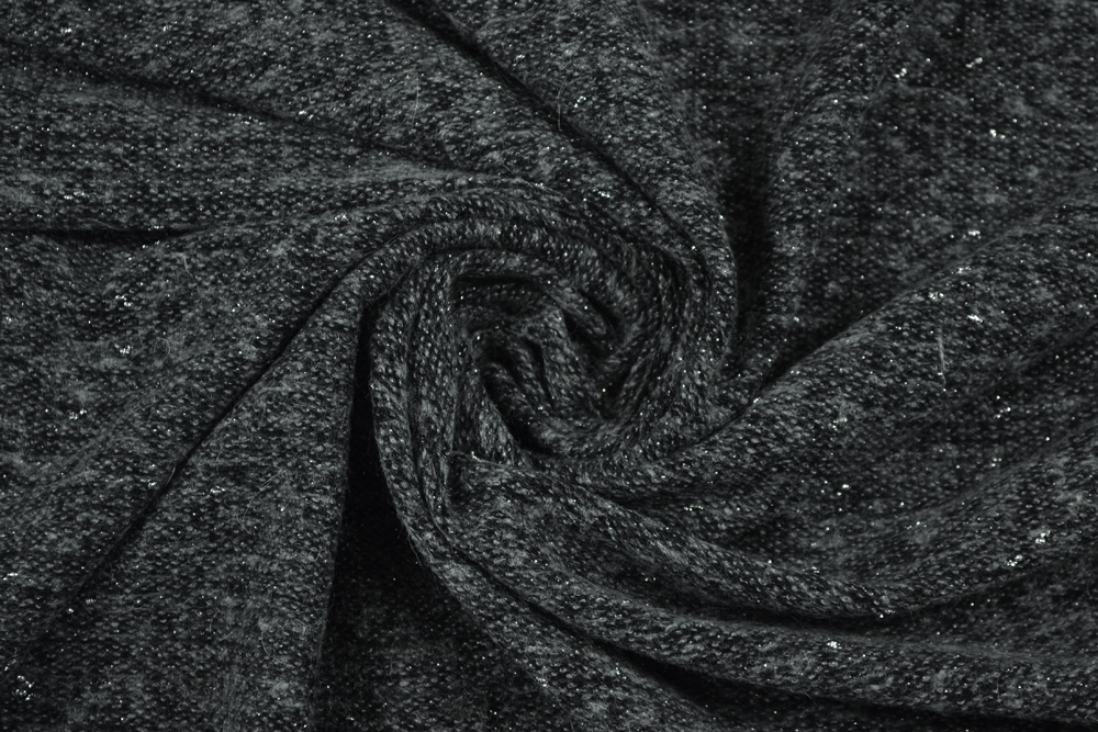 Maglia in misto lana nera e grigia, impreziosita da fili di lurex color argento che formano dei nodini in rilievo.