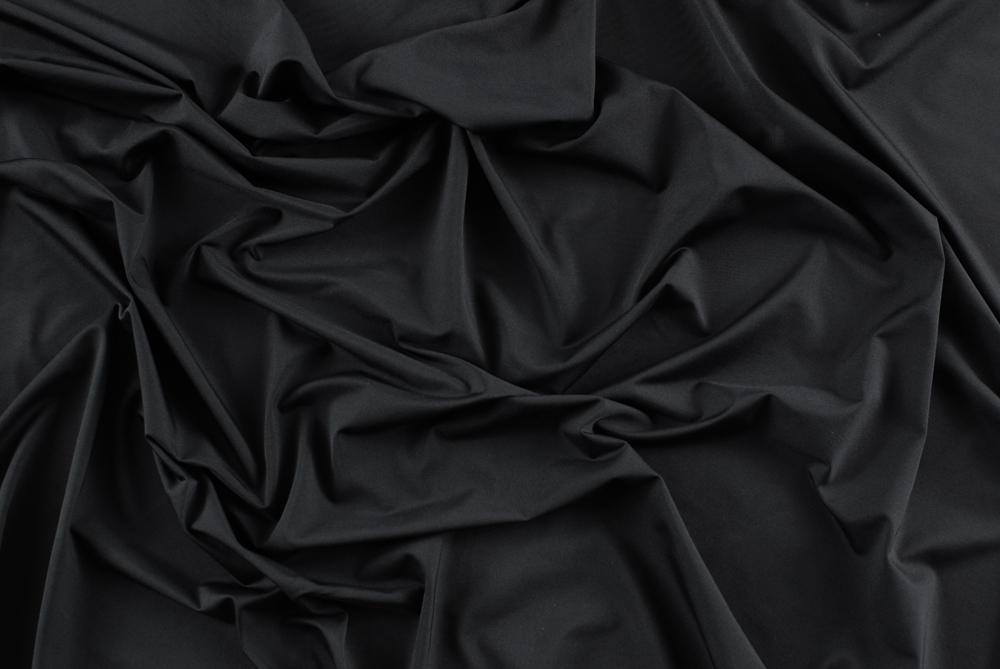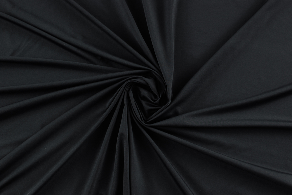 Lycra nera opaca. Tessuto bi-stretch, bielastico, adatto per innumerevoli creazioni: vestiti aderenti, abbigliamento sportivo, danza, costumi da bagno, intimo ecc. ecc..