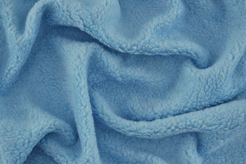 Pelliccetta sintetica d'agnello celeste con rovescio in maglia. Molto morbida, soffice e facile da cucire. Utile per abbigliamento, accessori e lavoretti.