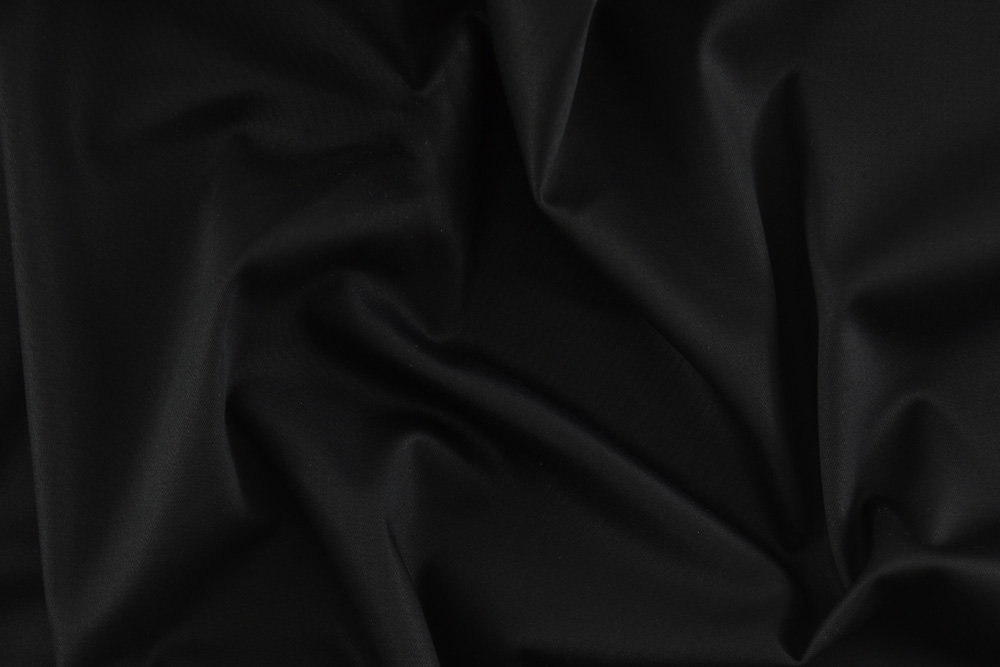 Bellissimo raso opaco di cotone nero elasticizzato. Tessuto con armatura a raso, luminoso ma non lucido come un classico raso.