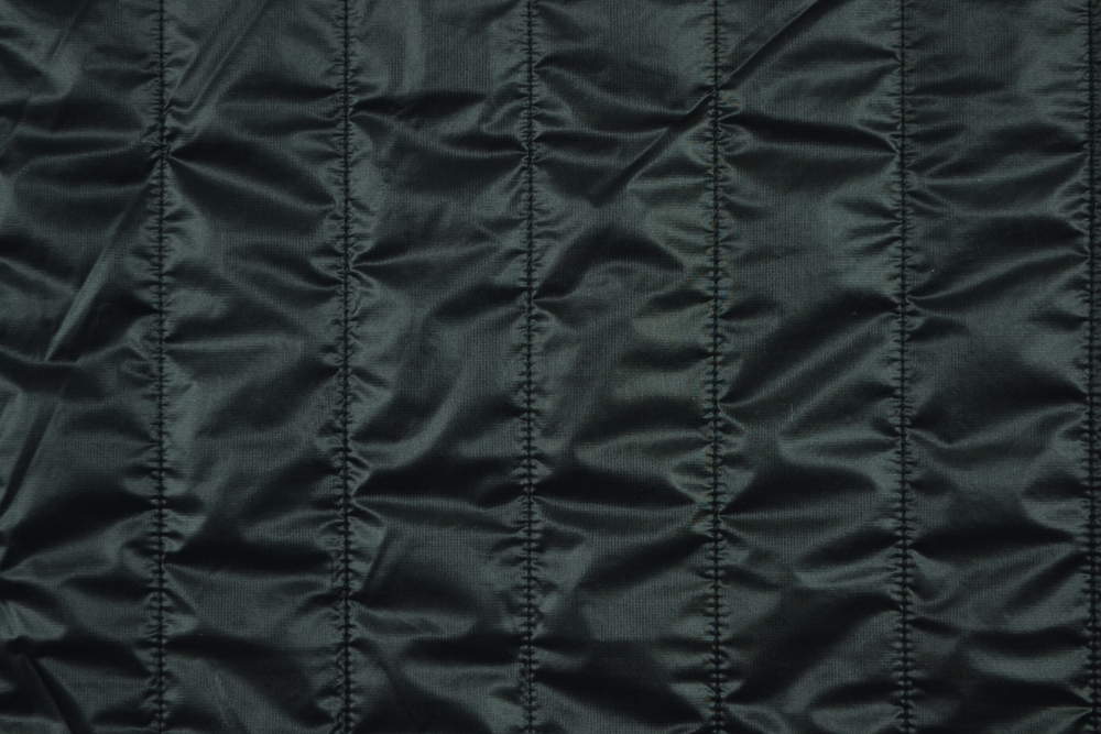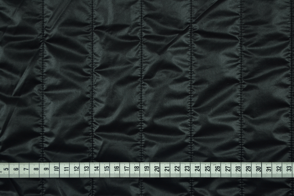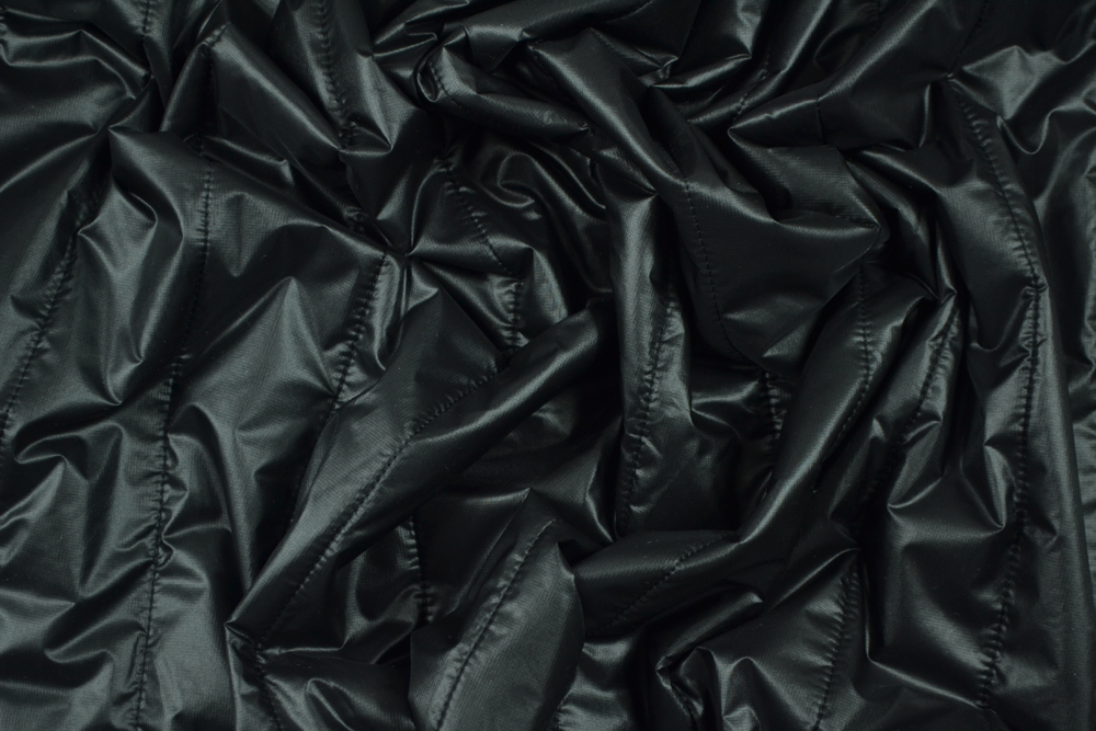 Tessuto idrorepellente trapuntato double face con imbottitura in ovatta di poliestere. Tessuto tecnico ripstop idrorepellente nero da un lato, e tessuto idrorepellente nero dall'altro lato, con trapuntatura a righe di 5 cm. Prodotto di ottima qualità !
