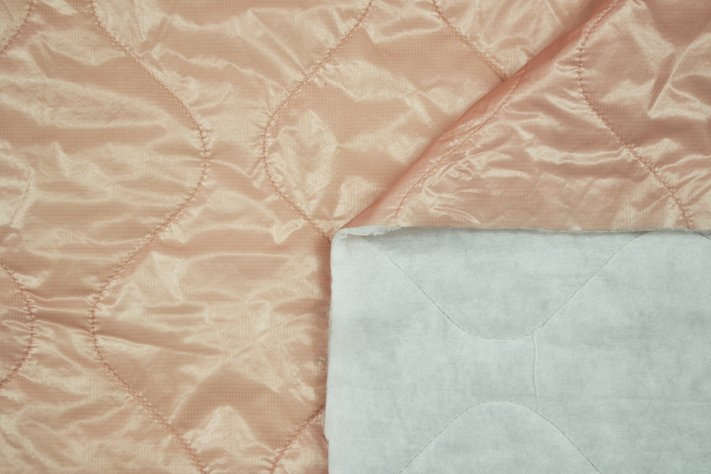 Tessuto idrorepellente ripstop trapuntato con imbottitura in ovatta di poliestere. Colore rosa antico chiaro. Prodotto di ottima qualità !